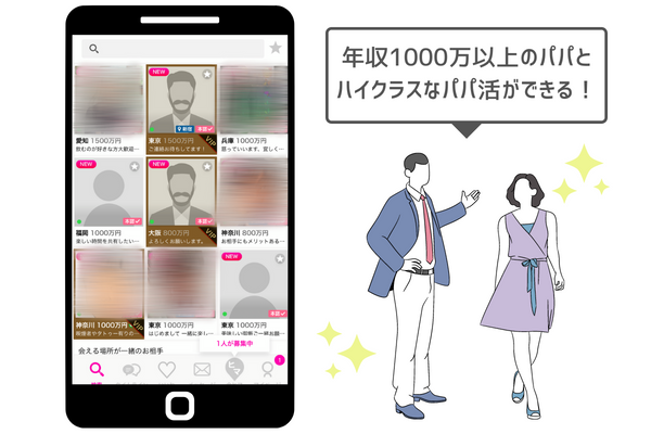 - 累計会員数1,200万人超。地方在住でもパパと出会いやすい